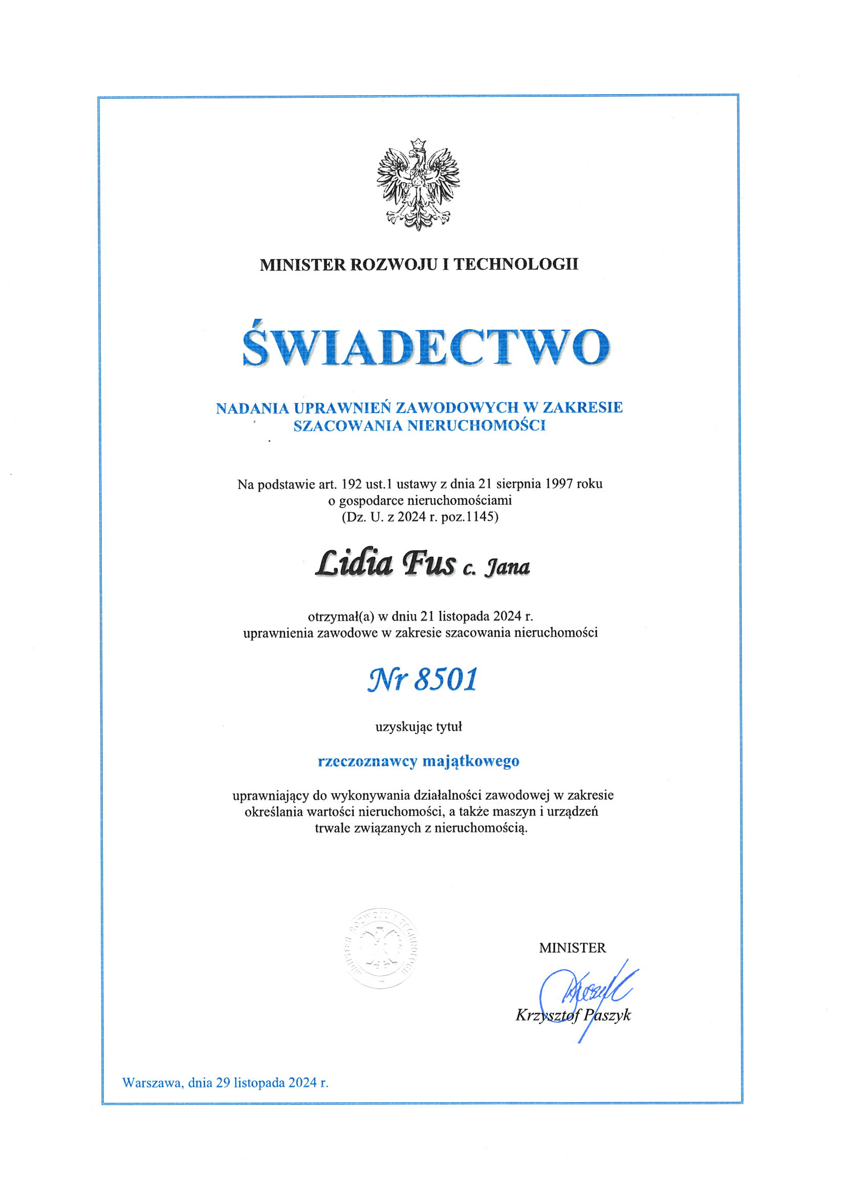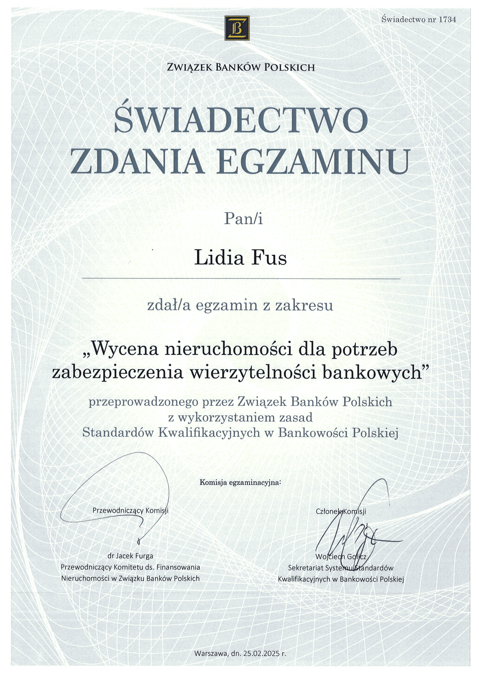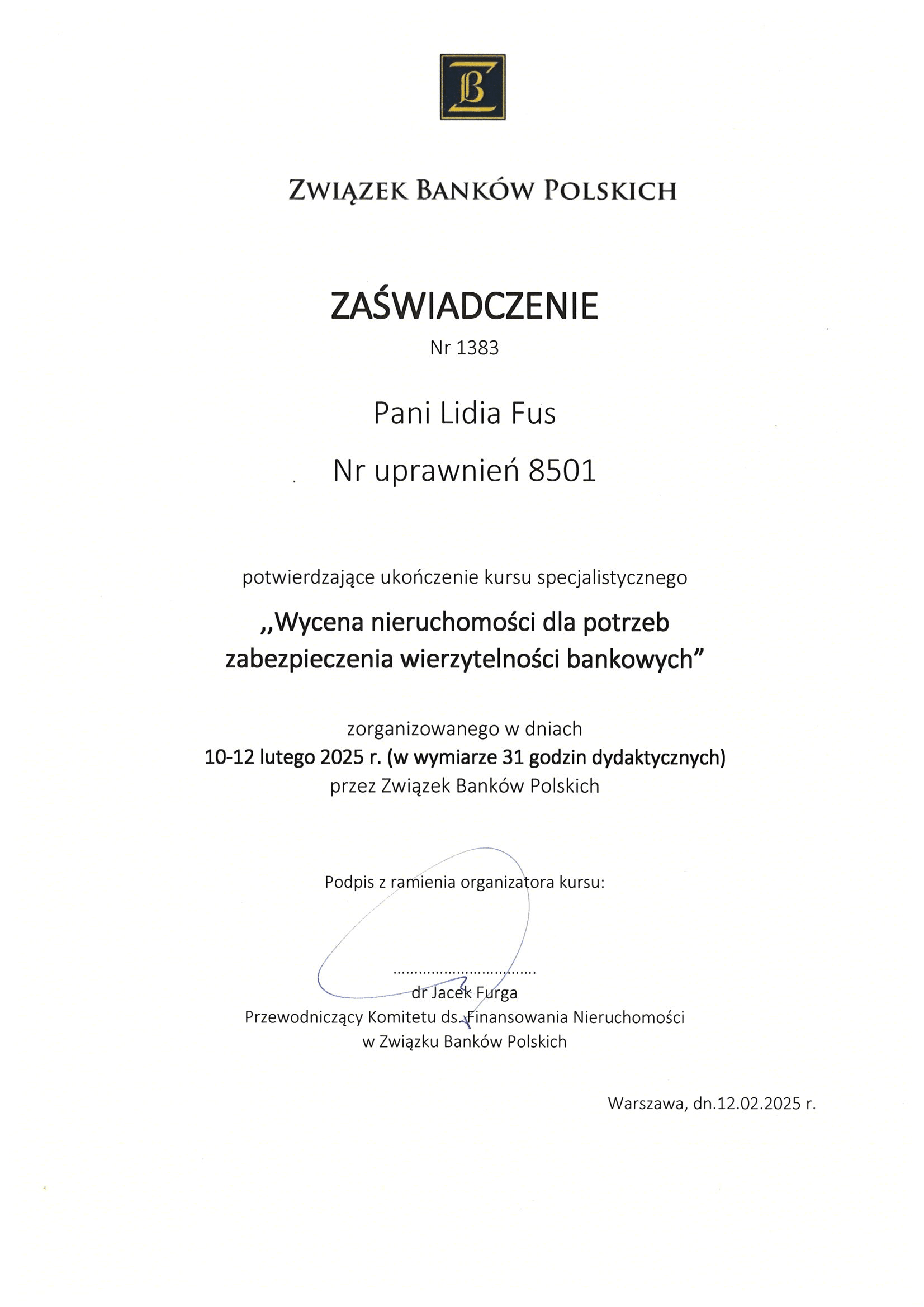 Certyfikaty – FUS NIERUCHOMOŚCI Lidia Fus